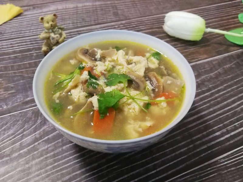 Tags: carrot · cooking wine · coriander · dinner · egg · home cooking · lunch · Mushroom · oil · salt · soup · Soups · wok