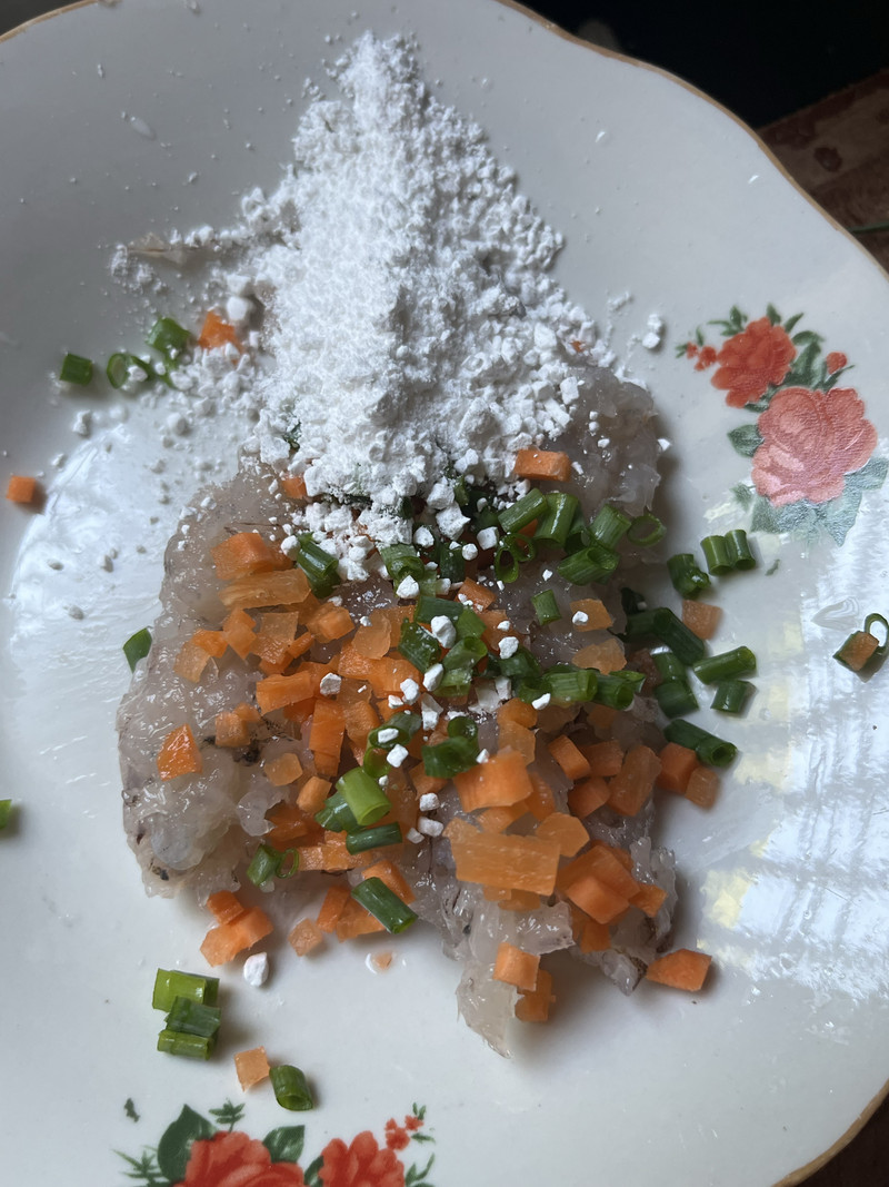 Before we dive into the culinary adventure, let’s gather our ingredients. You’ll find that most of these are pantry staples, making this recipe accessible for everyone. For about 1 pound (450g) of shrimp, peeled, deveined, and roughly chopped, you’ll need: about ½ cup of finely diced carrot, 2 to 3 scallions (green onions), finely chopped, and about 2 tablespoons of starch (cornstarch or tapioca starch work perfectly). For seasoning, we’ll use ½ teaspoon of salt, 1 teaspoon of minced fresh ginger, and 2 cloves of minced garlic. A crucial element is the aromatic liquid—we’ll make this by combining the minced ginger, garlic, and roughly chopped parts of the scallions with about 2 tablespoons of water. This mixture helps to infuse flavor and create a tender texture. If you can’t find fresh ginger or garlic, powdered versions can be used, but fresh truly brings out the best flavor. And if you don’t have scallions, the white and light green parts of a leek can be a good substitute, though the flavor profile will be milder.