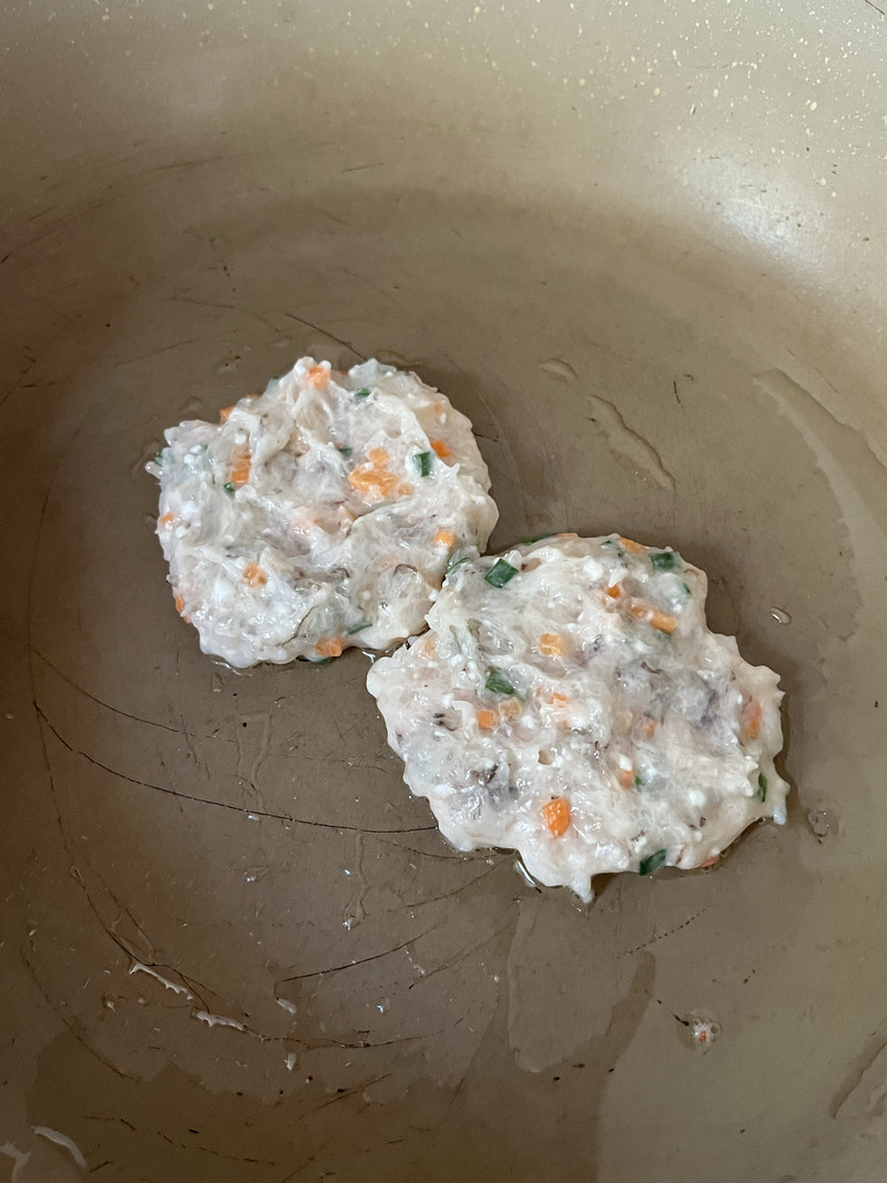 Mix everything together until well combined. To shape, slightly oil your hands and grab a portion of the shrimp mixture. Gently form it into small, flattened patties, about ½ inch thick.