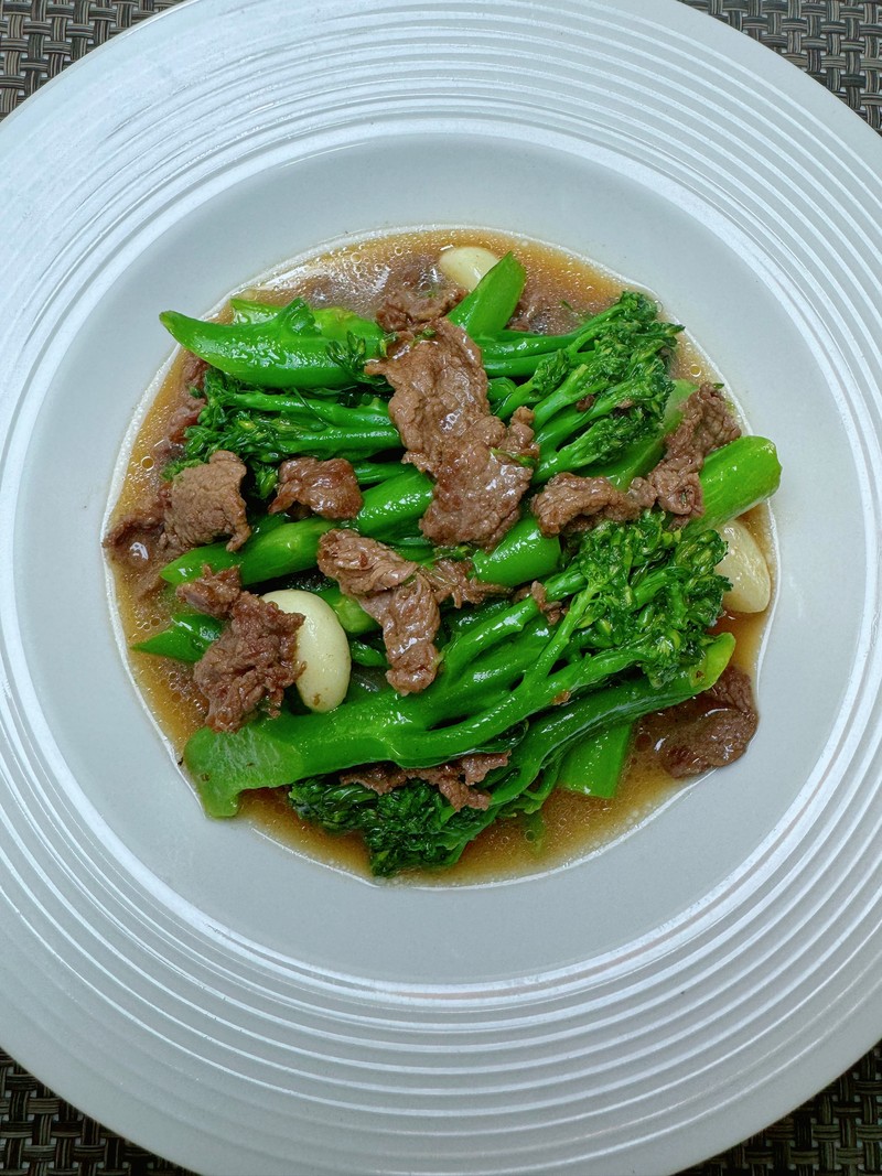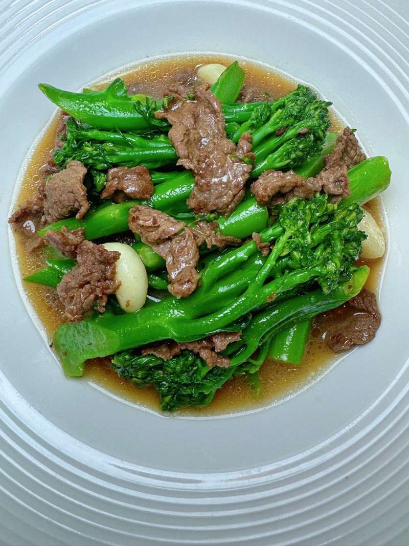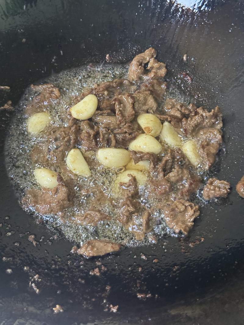 The beef is unbelievably tender and coated in a glossy, savory sauce infused with the aroma of garlic.