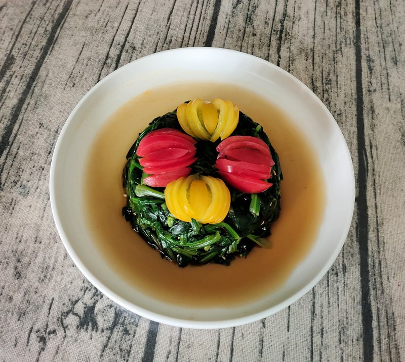 (Imagine a photo here of sliced cherry tomatoes being arranged on the spinach mound)And there you have it – your very own Emerald Spinach Mound, ready to impress! The texture is a delightful combination of tender spinach with a slight bite, all brought together by the savory, tangy, and subtly spicy dressing. The fresh tomato garnishes add little bursts of moisture and sweetness that complement the greens perfectly. It’s a light, clean, and refreshing dish that proves simple can be spectacular.
