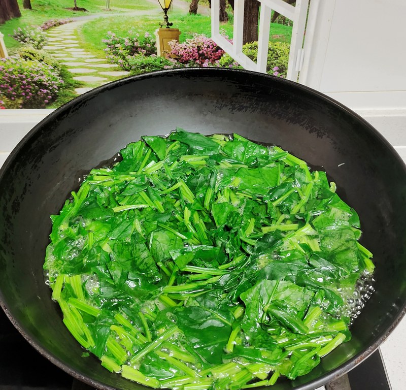 (Imagine a photo here of blanched spinach in ice-cold water or being rinsed)