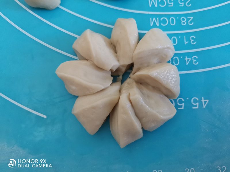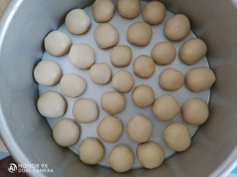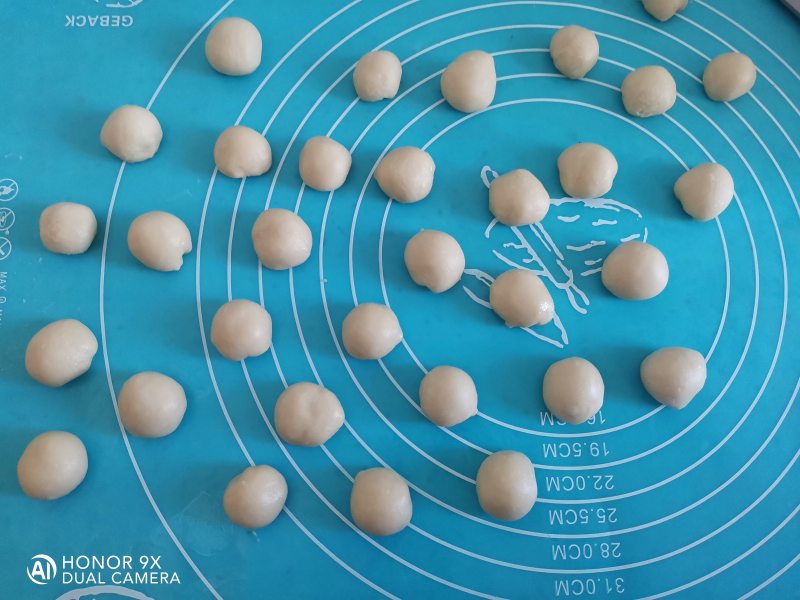 7. Take each portion and divide it again into 8 smaller, equal pieces. You should now have 32 mini dough balls in total.