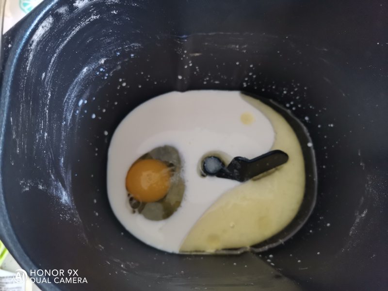 2. In the bowl of your bread machine or stand mixer, combine the wet ingredients: yogurt, the 20g of beaten egg, oil, and sugar.