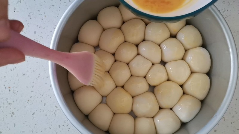 11. Towards the end of the rising time, preheat your oven to 340°F (170°C). Once the buns have risen, gently brush their tops with the remaining beaten egg.