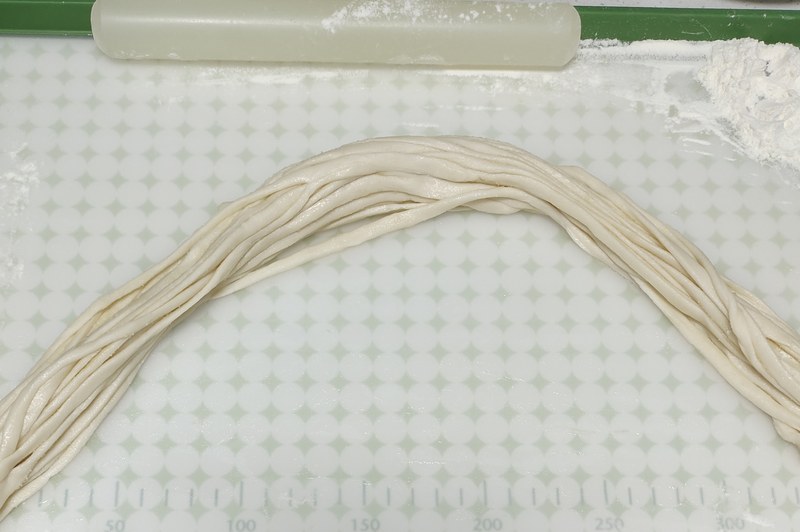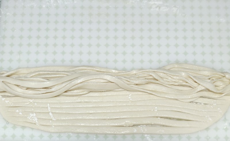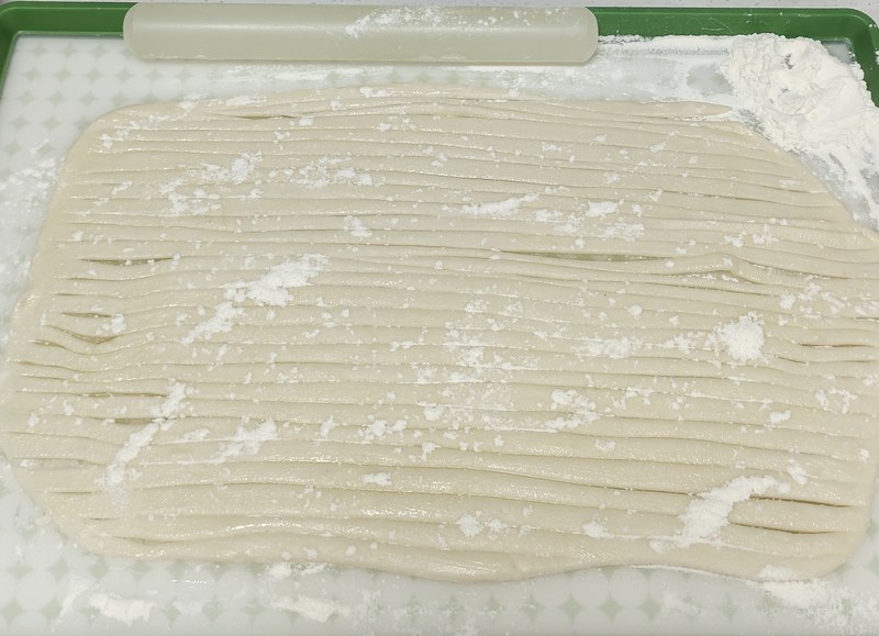 The term for using hot water in the dough is tangmian. This technique pre-cooks some of the starches in the flour, which limits gluten development and results in a dough that is incredibly soft and easy to roll out.
