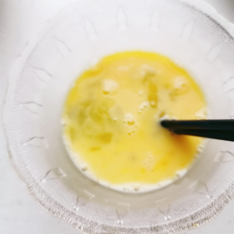 Gently beat the egg in its bowl with a fork or chopsticks until the yolk and white are just combined. Don’t over-whisk; you want it lightly scrambled.
