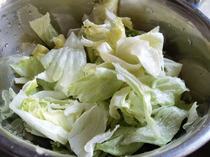 Arrange the Greens: Tear the dried lettuce into bite-sized pieces and place them in your serving bowl or on your plate.