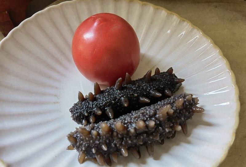 Prepare the Sea Cucumber and Tomato: If using dried sea cucumber, ensure it’s been properly rehydrated according to package instructions. For pre-soaked versions, give them a quick rinse. Wash your tomato thoroughly.