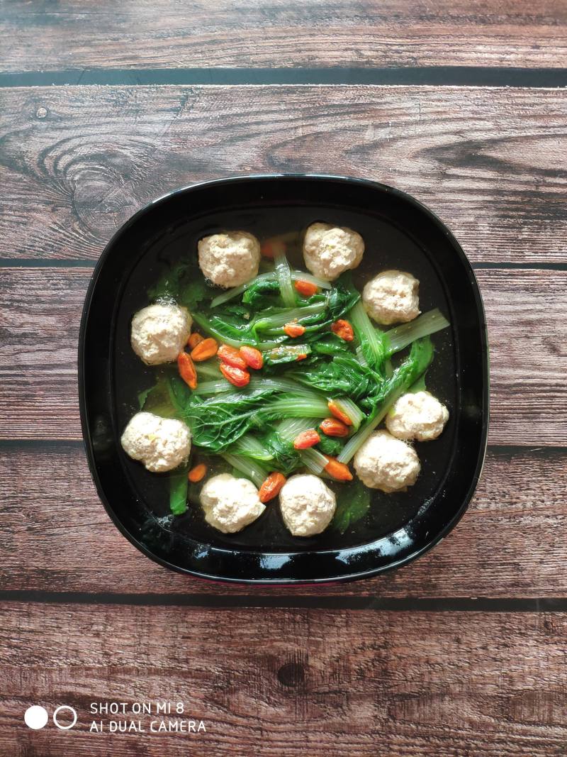 Poached Pork Meatballs and Bok Choy Soup