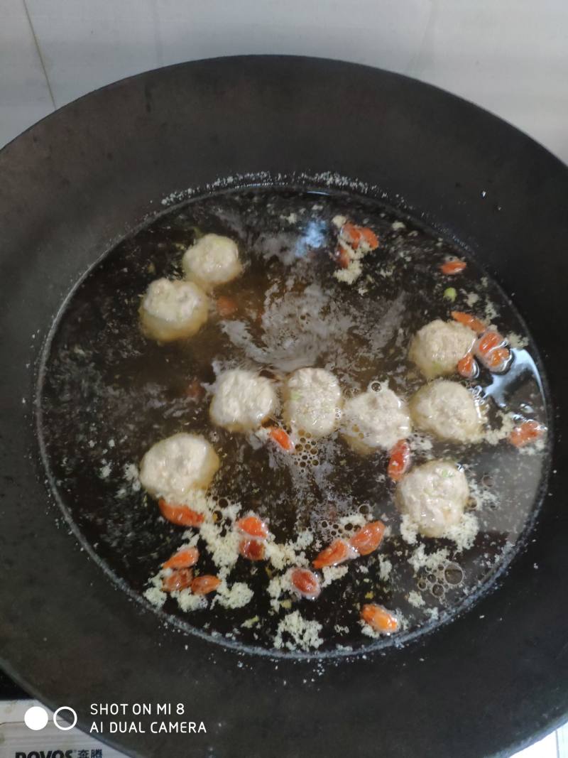 7. After a few minutes, the meatballs will float to the surface, which is the sign they are cooked through. Now, it’s time to season the broth. Stir in the soy sauce, sesame oil, chicken bouillon powder (if using), a pinch of salt, and the optional goji berries. Taste the broth and adjust the seasoning if needed.
