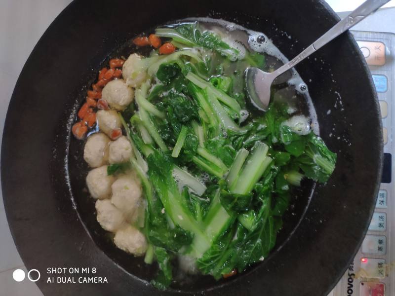 Tags: bok choy · chicken bouillon · cooking pot · dinner · egg white · five-spice powder · home cooking · Jiang · lunch · oyster sauce · Pork filling · salt · scallion · sesame oil · soup · Soups · soy sauce · wolfberry