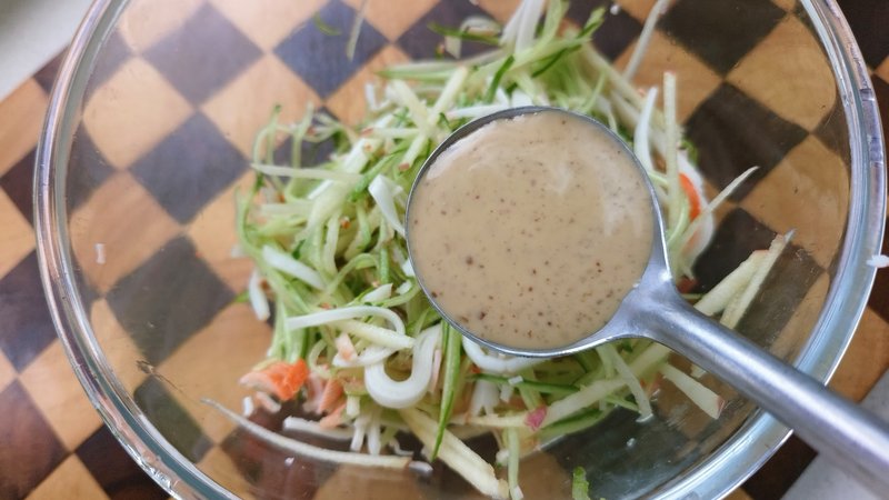 Tags: apple · apple cider vinegar · cold dish · crab stick · cucumber · home cooking · other · sesame paste