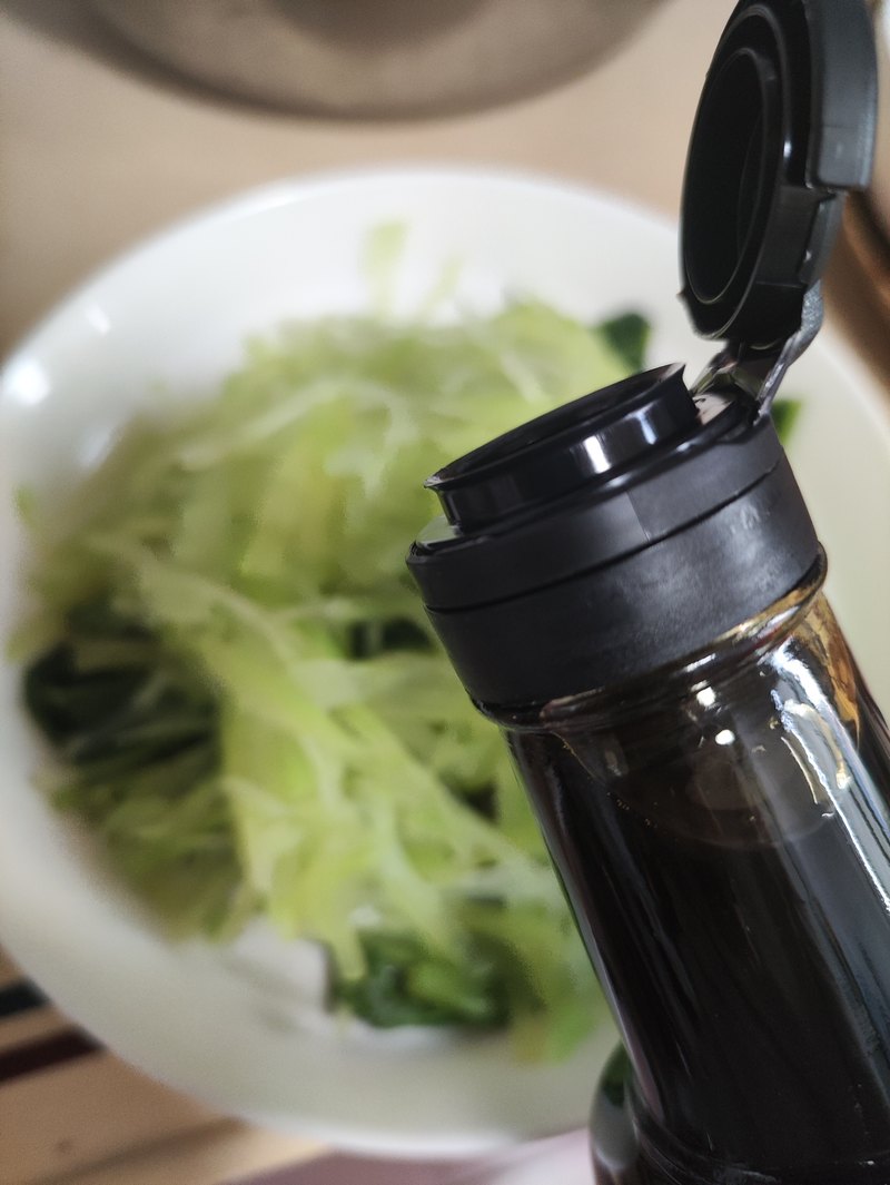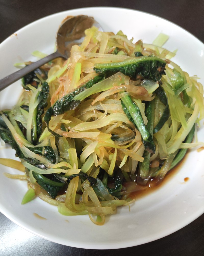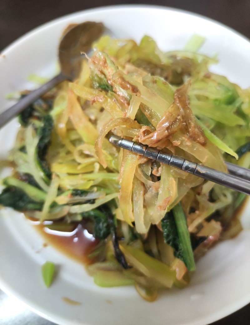 Drain them immediately. In a bowl, combine the blanched lettuce with the soy sauce and vinegar.