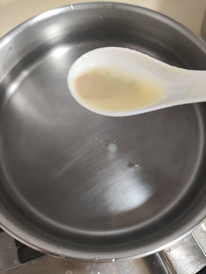 Next, bring a pot of water to a rolling boil. Add a pinch of salt and the lard to the boiling water. The salt enhances the flavor of the lettuce, and the lard gives it a subtle gloss and a hint of richness.