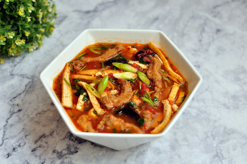 Toss in your crispy pork nuggets, fried tofu, and the sliced black wood ear mushrooms. Let the soup return to a boil, then reduce the heat to a gentle simmer. Let it bubble away for 5-6 minutes. This is where all the flavors get to know each other and the pork and tofu absorb that incredible broth.