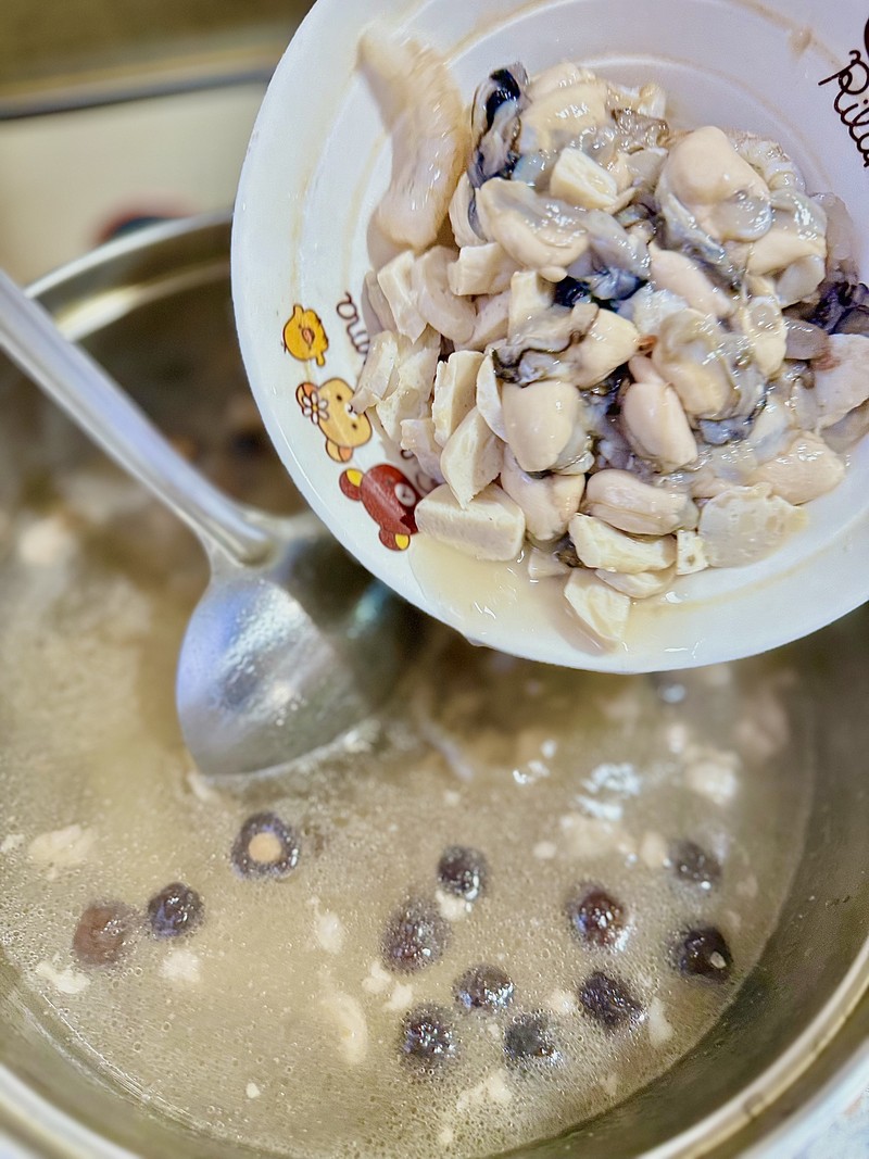 Pour in your stock and bring it to a rolling boil. Carefully add the cuttlefish balls, oysters, shrimp, and duck blood (if you’re using it). Let it cook for 1-2 minutes until the shrimp turn pink and are just cooked through. Now, stir in the dark soy sauce, a pinch of salt, MSG (if using), and a generous dash of white pepper. Finally, add the misua noodles. These noodles cook extremely fast, usually in under 60 seconds. Stir them in gently and watch as the broth quickly thickens into a beautiful, silky pottage.