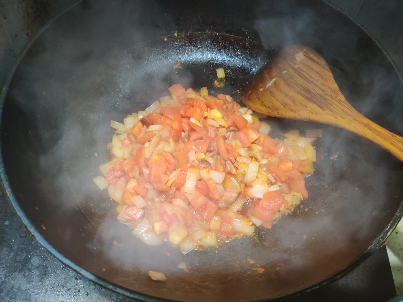 9. Now, add the diced tomatoes. Cook them down, stirring and gently mashing them with your spoon, until they release their juices and break down into a rustic, chunky sauce.