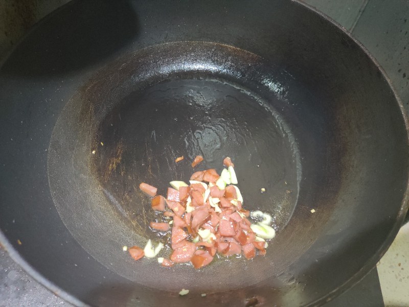 7. Add the minced garlic to the pan and stir-fry for about 30 seconds until it becomes wonderfully fragrant.