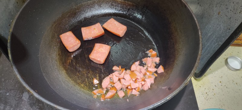 6. In a large skillet or pan, heat a drizzle of olive oil over medium-high heat. Add the diced sausage and pan-fry until the edges are nicely browned and slightly crispy.