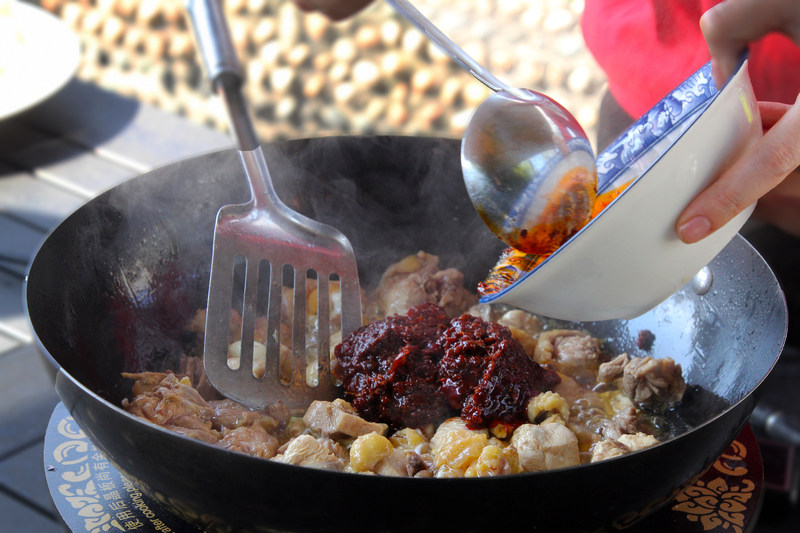 Turn the heat down to low and add your Sichuan Braising Sauce (or your homemade Doubanjiang mixture). Stir-fry for about 1 minute, ensuring every piece of chicken is coated in the fragrant, spicy paste. This step is crucial for blooming the spices and building the first layer of incredible flavor. Be careful not to let the paste burn.
