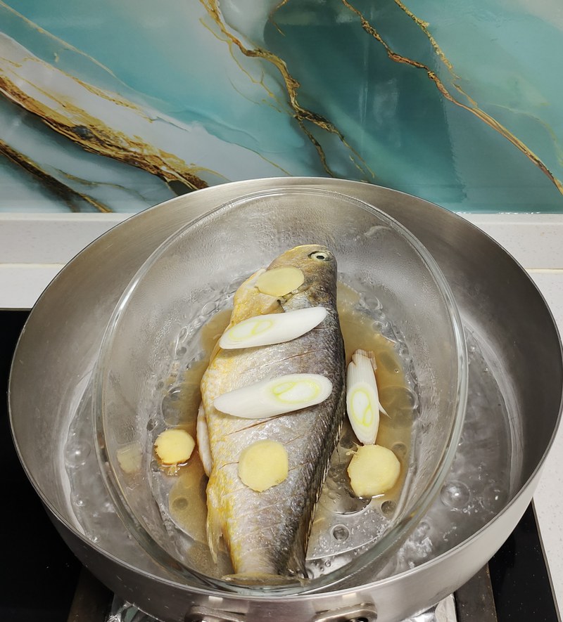 First, ensure your fish is thoroughly cleaned and patted dry with paper towels. Place it on a heatproof plate that will fit inside your steamer.