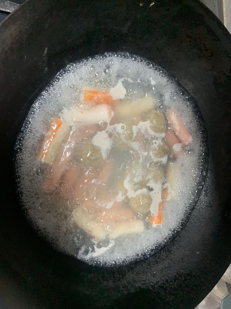 Now it’s time for the main event! Add all the parboiled vegetables and meatballs to the wok.
