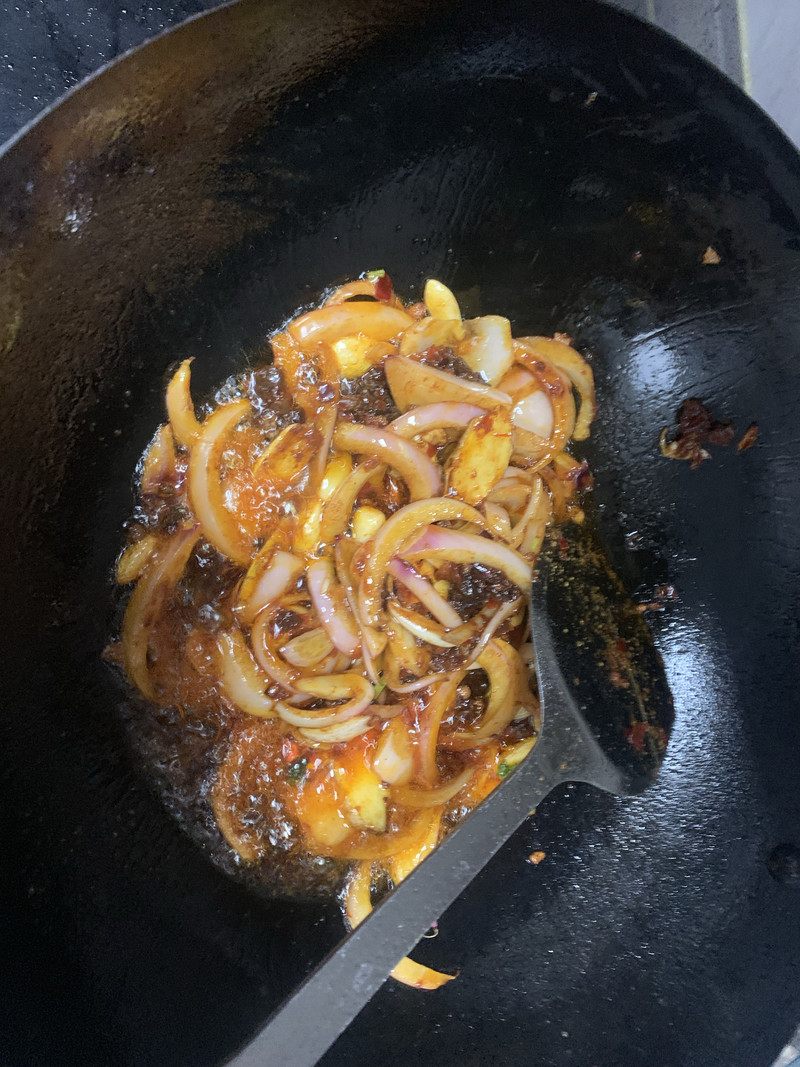 Place a large wok or skillet over medium-high heat. Add a generous amount of vegetable oil. Once the oil is shimmering, toss in the minced ginger, garlic, and Sichuan peppercorns. Stir-fry for about 30 seconds until fragrant. Add the onion wedges and continue to stir-fry until they just begin to soften.