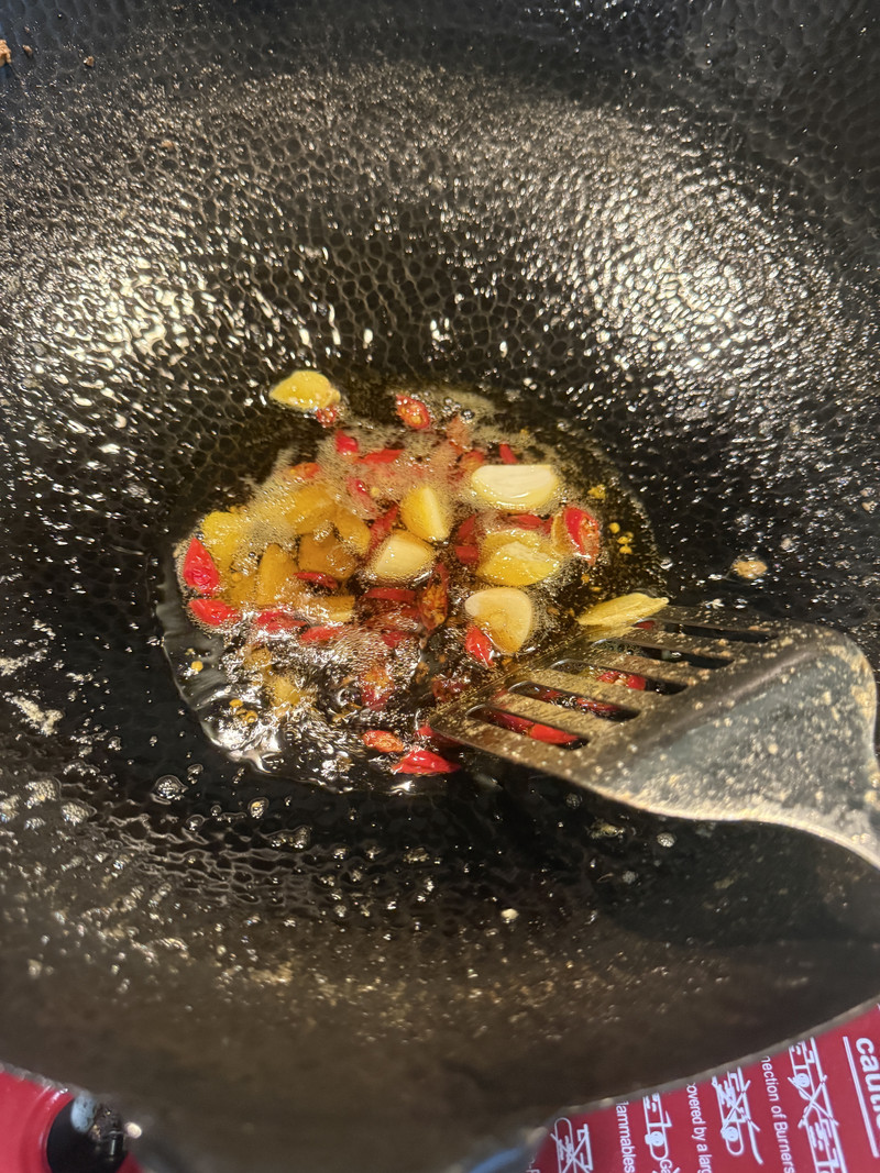 Carefully pour out most of the oil, leaving about 1-2 tablespoons in the wok. Place it back on medium-high heat. Add the sliced ginger, garlic, dried red chiles, and the green Sichuan peppercorns. Stir-fry vigorously for about 30-45 seconds until they release their incredible fragrance. This step builds the aromatic foundation of the dish.