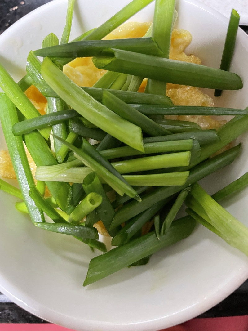 Heat about a tablespoon of oil in a large skillet or wok over medium-high heat. Once the oil is shimmering, crack in the egg and fry it to your liking—sunny-side up with a runny yolk is delicious, but a simple fried or scrambled egg works too. Once cooked, remove the egg from the skillet, set it aside on a cutting board, and let it cool slightly.