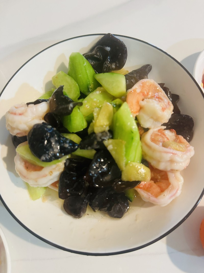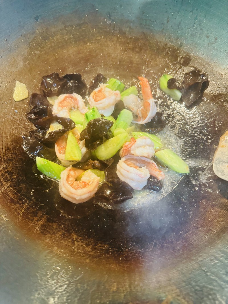 Preparation: If you’re using dried wood ear mushrooms, place them in a bowl and cover with warm water for about 20-30 minutes, or until they are fully rehydrated and soft. Once rehydrated, rinse them well, trim off any tough, woody stems, and slice them into bite-sized pieces. Slice your cucumber into half-moons about 1/4-inch thick. Pat your peeled and deveined shrimp completely dry with a paper towel, then toss them in a small bowl with the teaspoon of cornstarch until they are lightly coated.