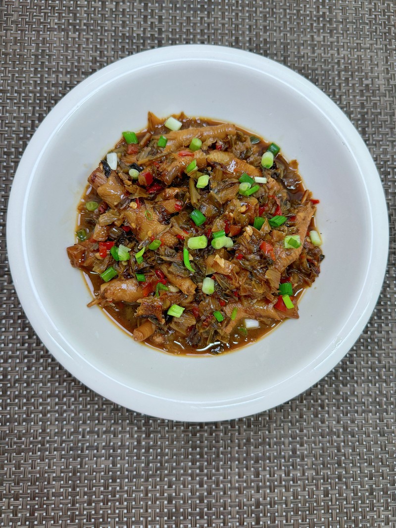 Spicy Braised Chicken Feet with Savory Mustard Greens