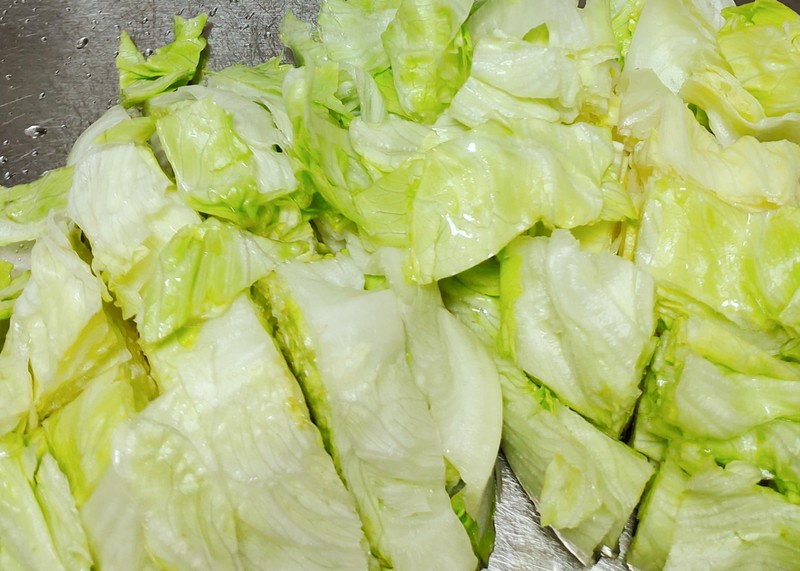 First, prepare your lettuce. Wash the iceberg head thoroughly, then tear or cut it into bite-sized strips, about 1-2 inches wide. Tearing with your hands can create nice rustic edges that hold the dressing well.