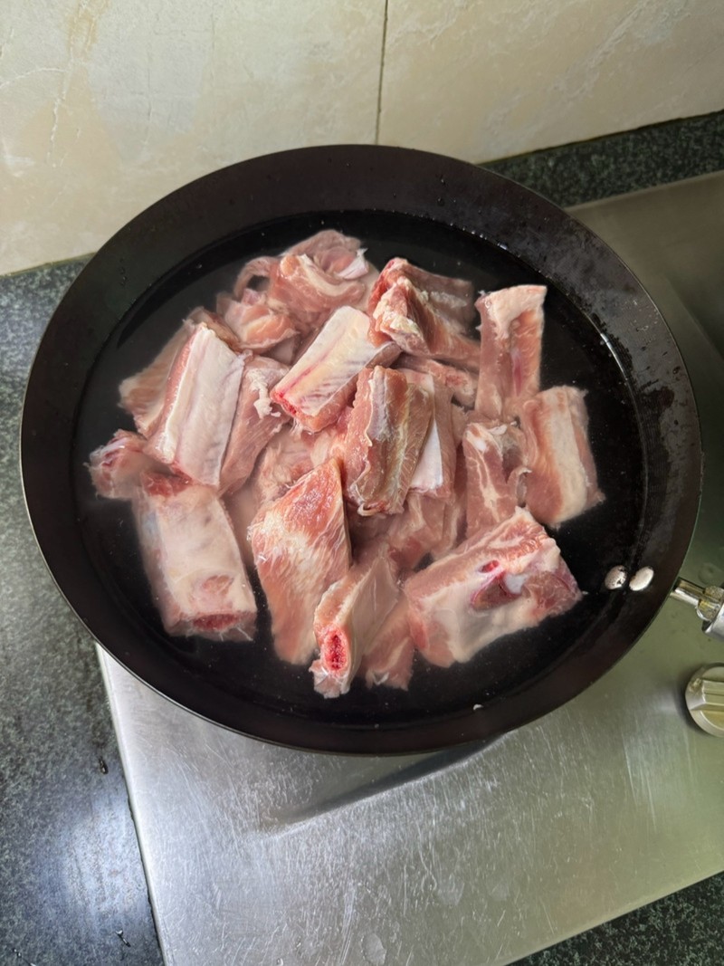 2. Place the pork ribs in a pot and cover them with cold water. Bring to a boil and let it bubble for 2-3 minutes. You’ll see some foam rise to the surface. This step, called blanching, cleans the ribs and ensures a clear, flavorful broth. Drain the ribs and rinse them well under running water.