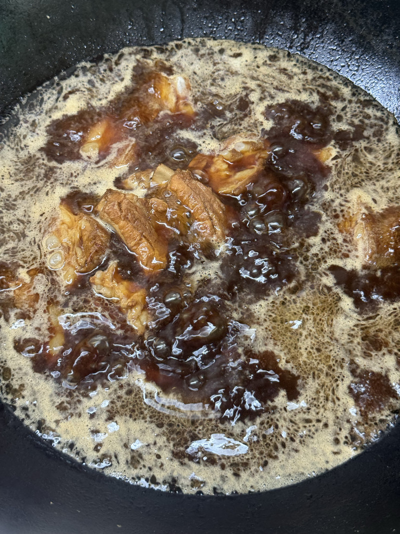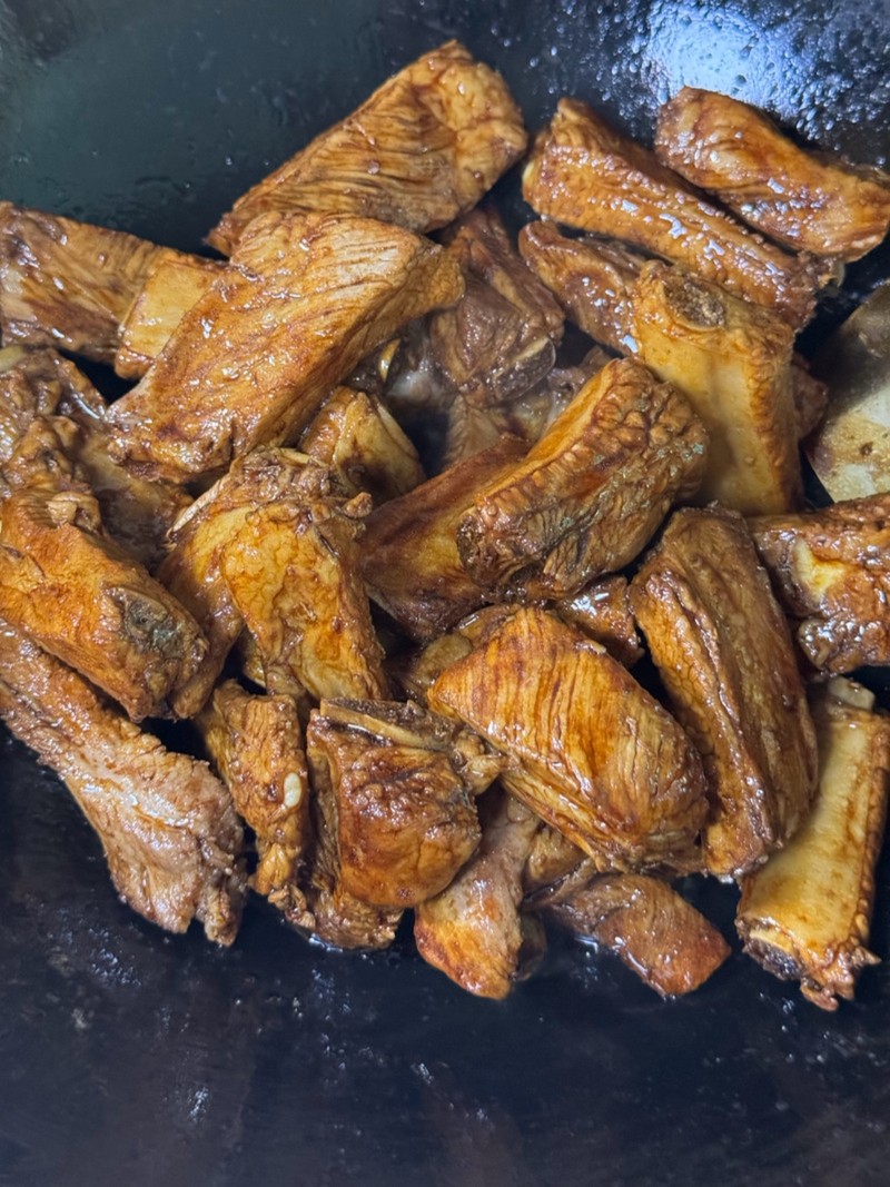 8. Once the ribs are tender, transfer them and all their braising liquid back into your wok or large pot if you used a pressure cooker. Bring it to a boil.