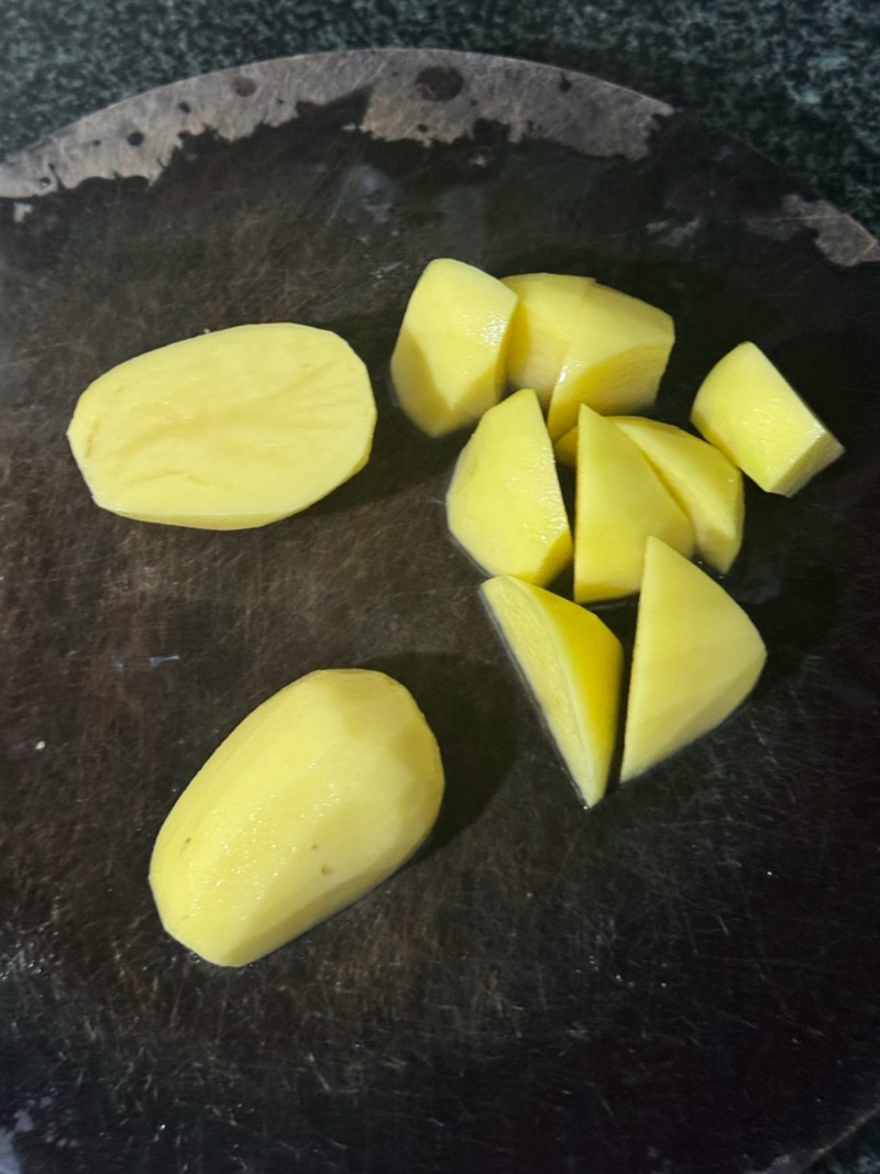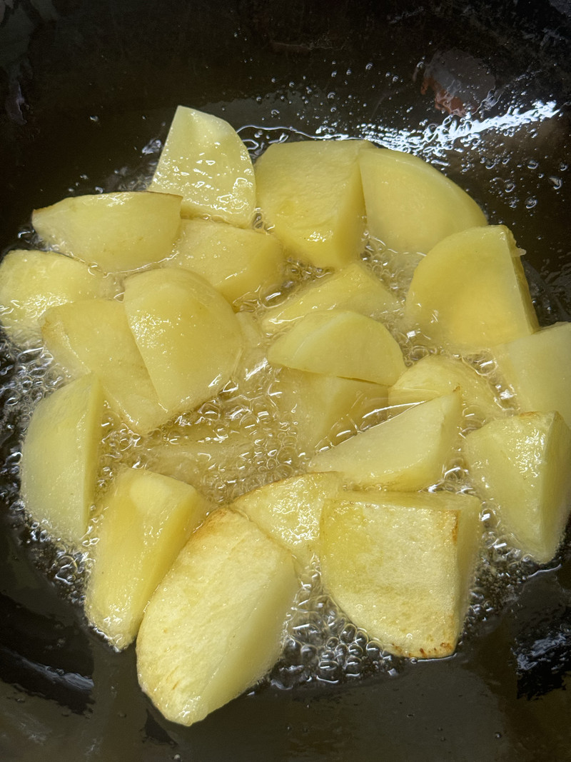 3. In a large wok or Dutch oven, heat 1 tablespoon of oil over medium-high heat. Add the potato chunks and pan-fry them for 4-5 minutes, turning occasionally, until they are lightly golden on the edges. This helps them hold their shape in the stew. Remove the potatoes and set them aside.