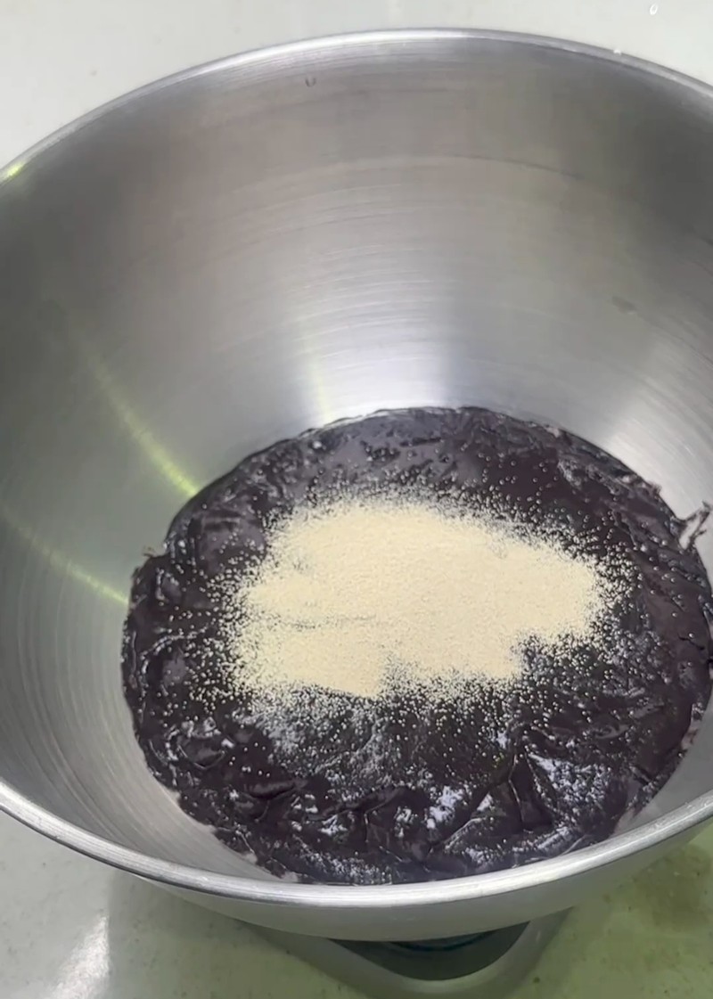 5. Sprinkle the 5g of yeast over the paste and stir gently to combine.