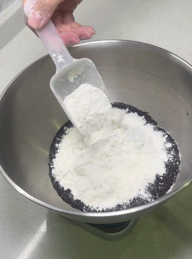 6. Add the 500g of all-purpose flour and the 10g of lard (or your chosen substitute). Don’t worry if you’re skipping the fat; they will still be delicious.