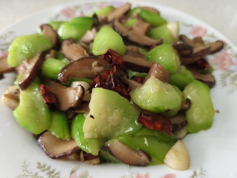 Combine and Finish: Immediately add the sliced shiitake mushrooms and stir-fry for another minute to let them get coated in the fragrant oil. Then, add the luffa pieces, salt, white pepper, and the optional chicken bouillon powder. Toss everything together vigorously. Continue to stir-fry for just 2-3 minutes. The luffa will cook very quickly, turning a beautiful translucent green and becoming tender while still retaining a slight bite.