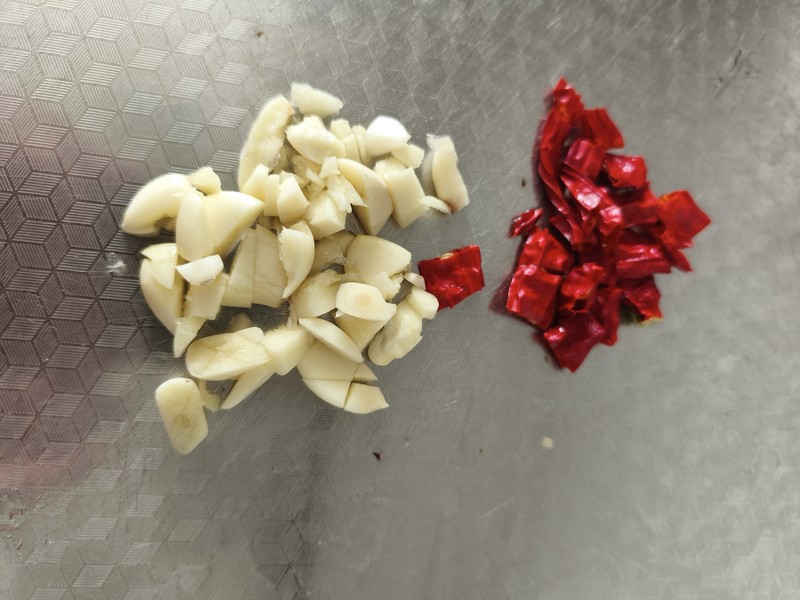 Prep the Aromatics: Finely mince your garlic and thinly slice the red chili. Keep them nearby as you will need them right at the start of cooking.
