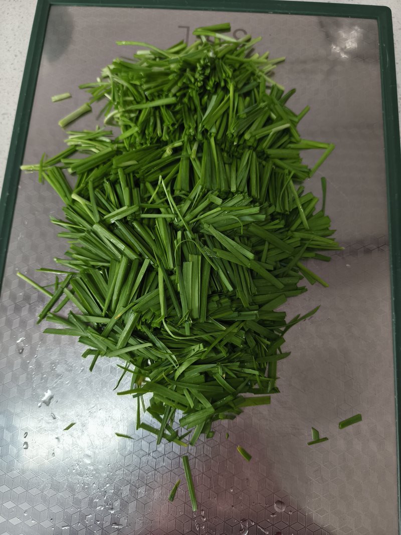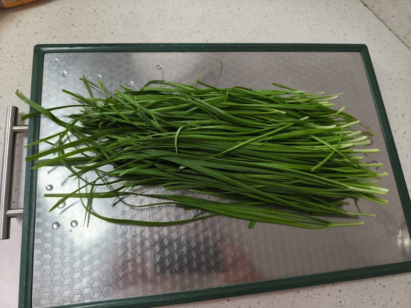 2. Once dry, slice the chives into 2-inch (5cm) long segments. Set them aside.