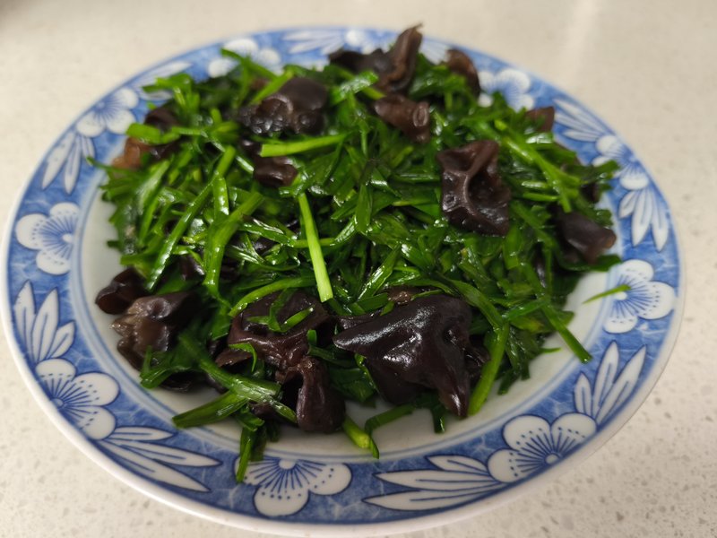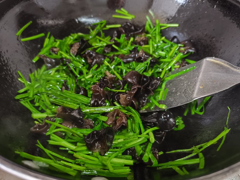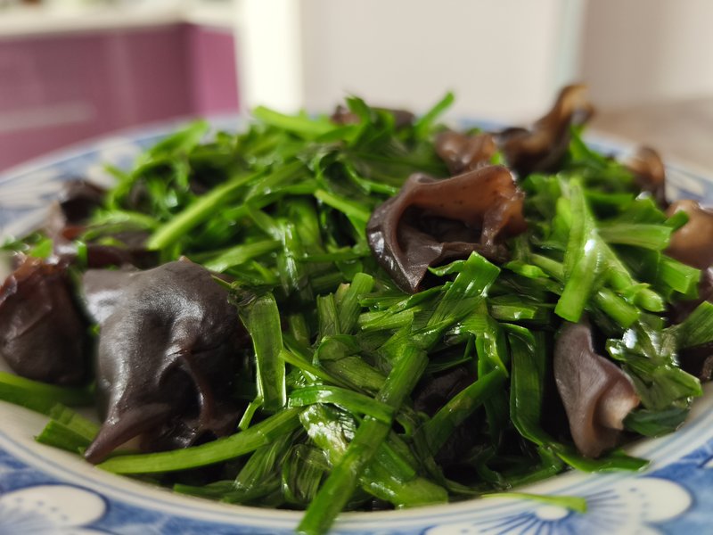 Tags: garlic chives · home cooking · hot dishes · peanut oil · salt · wok · wood ear